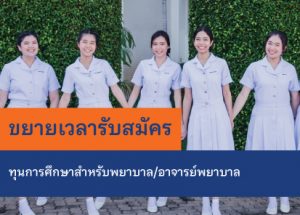 ประกาศ ขยายเวลารับสมัครให้ทุนการศึกษาสำหรับพยาบาล/อาจารย์พยาบาล เพื่อศึกษาต่อในระดับปริญญาโทต่อปริญญาเอก ณ ต่างประเทศ ตามดครงการบริหารคณะพยาบาลศาสตร์ ประจำปีงบประมาณ พ.ศ. ๒๕๖๒ (รอบ ๒) ดูรายละเอียด