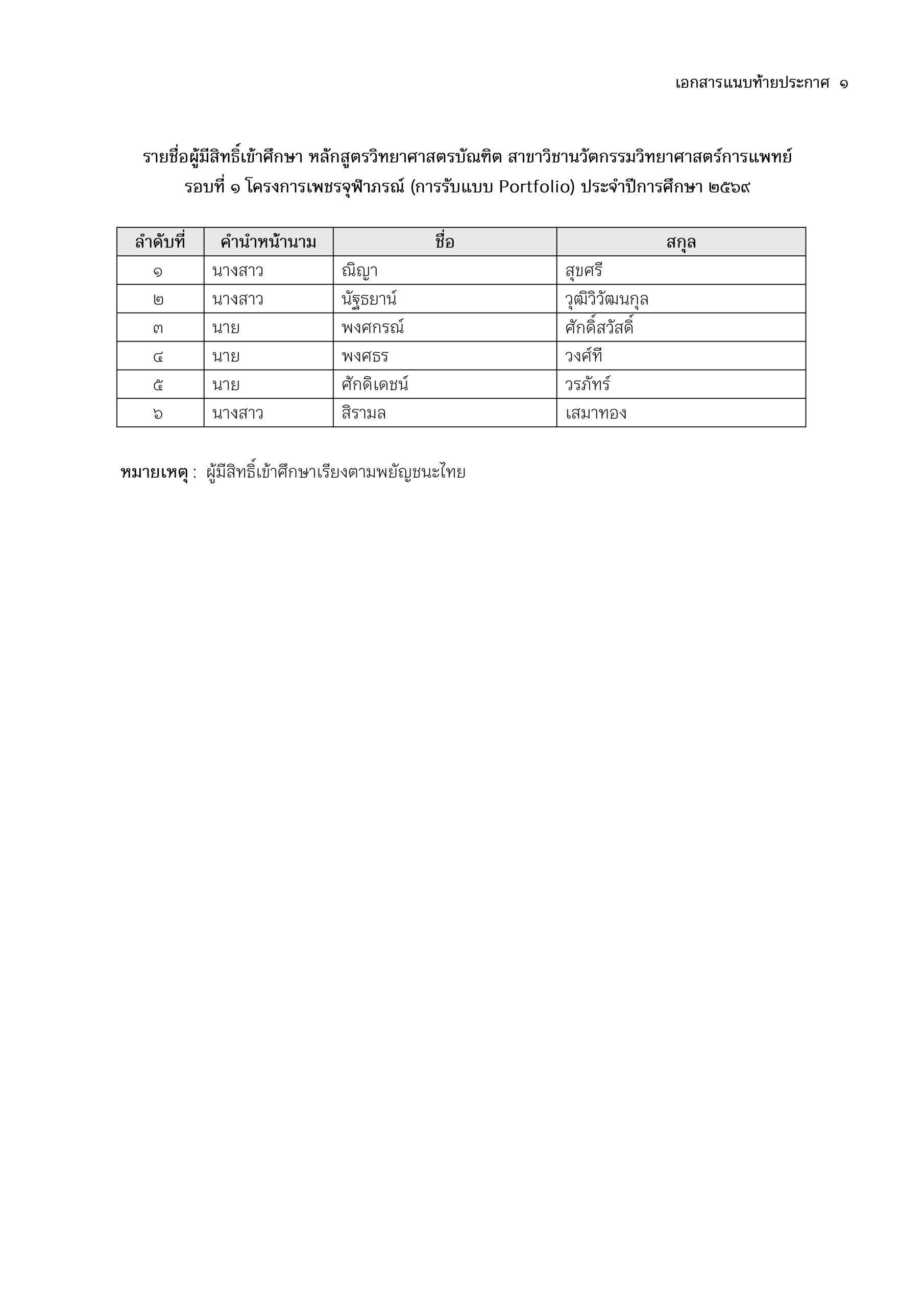 ประกาศคณะวิทยาศาสตร์ เรื่อง รายชื่อผู้มีสิทธิ์สอบสัมภาษณ์ หลักสูตรวิทยาศาสตร์บัณฑิต สาขาวิชาเทคโนโลยีอาหารทางการแพทย์และสุขภาพ รอบที่ ๑ โครงการเพชรจุฬาภรณ์ (การรับด้วยแฟ้มสะสมผลงาน Portfolio) ประจำปีการศึกษา ๒๕๖๙ 10 ก.พ. 2569 FacebookTwitterLine รายชื่อผู้มีสิทธิ์สอบสัมภาษณ์Download