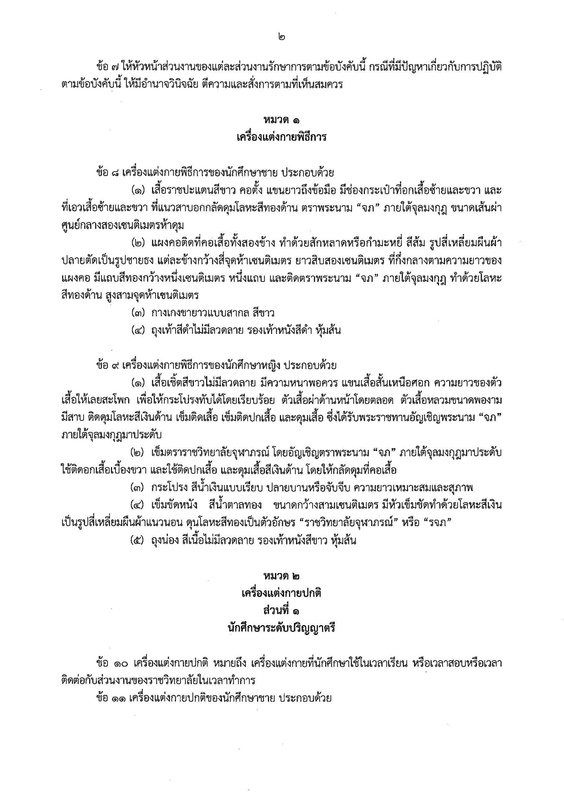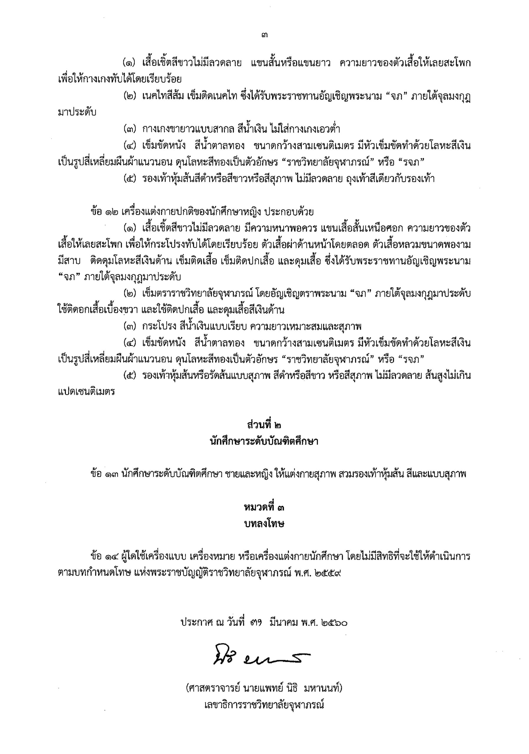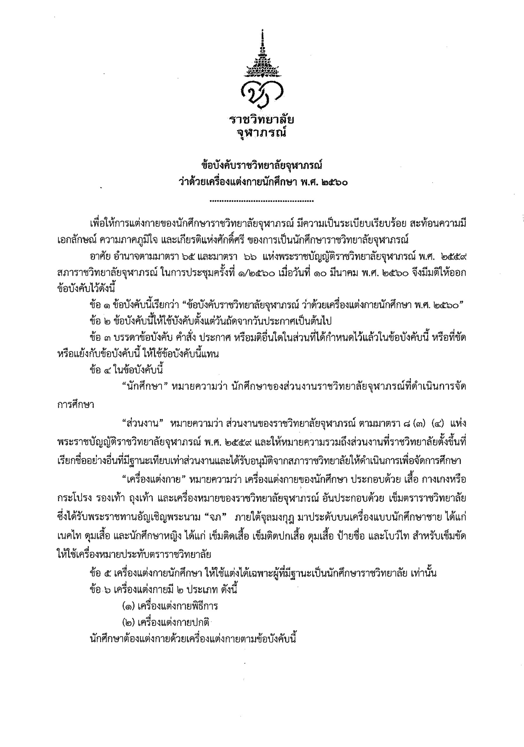 ข้อบังคับรจภ. ว่าด้วย เครื่องแต่งกายนักศึกษา พ.ศ. 2560