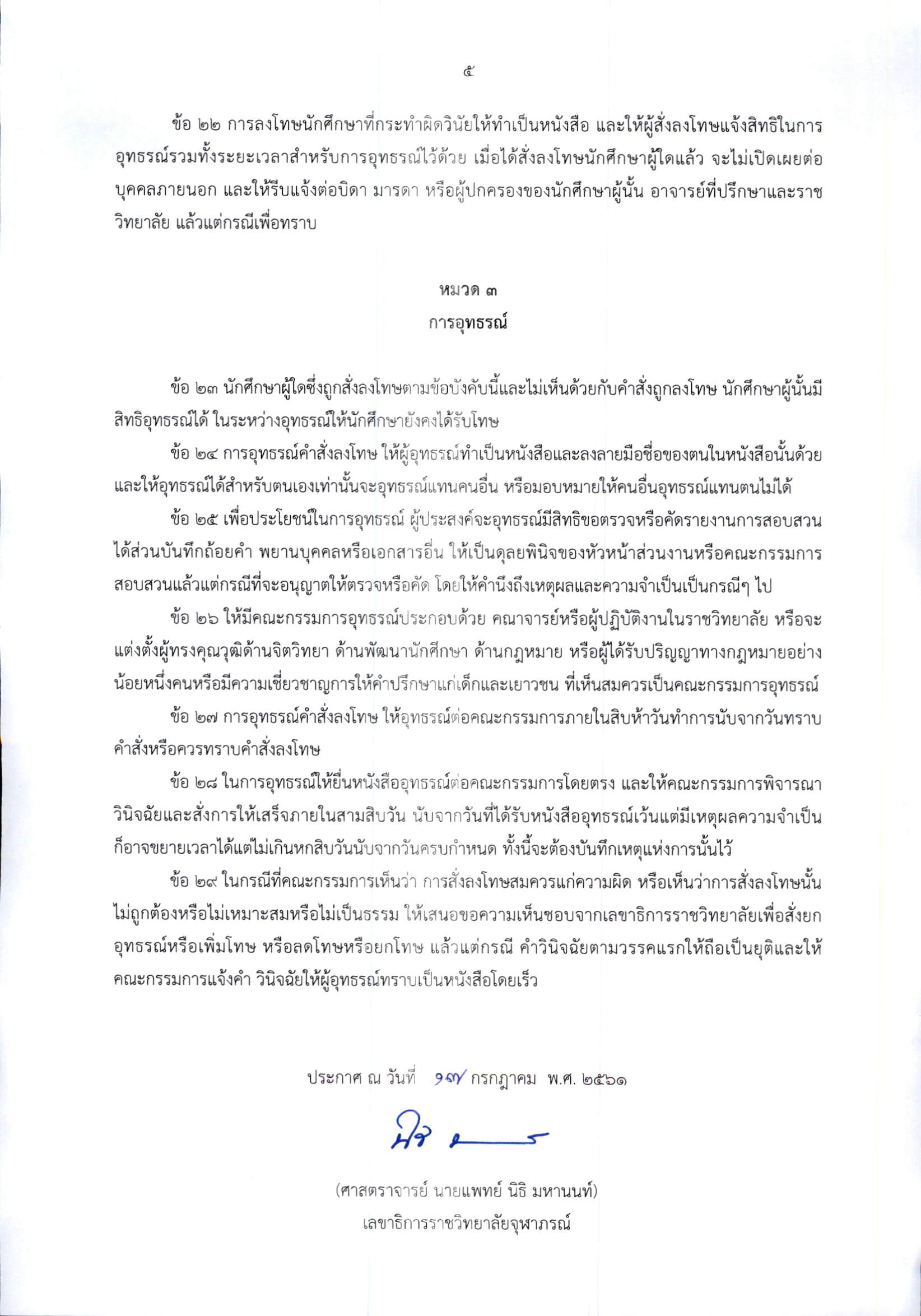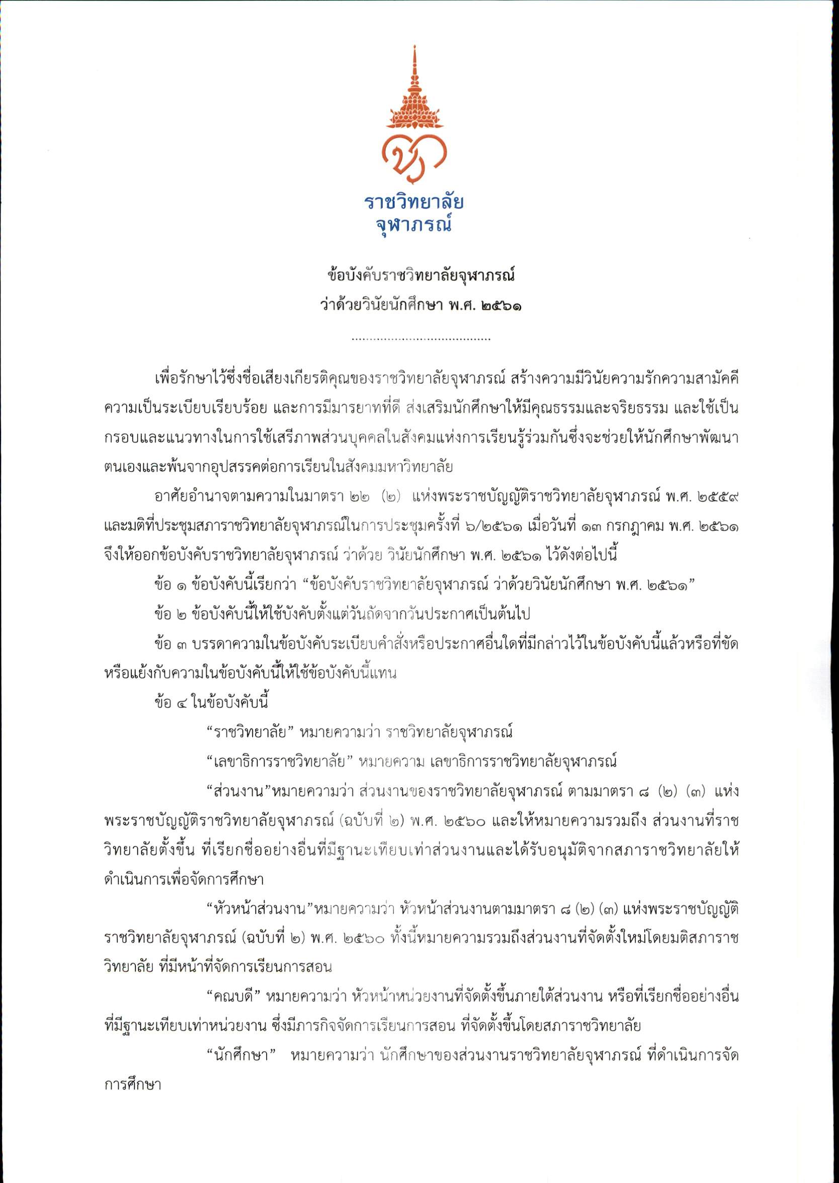 ข้อบังคับราชวิทยาลัยจุฬาภรณ์ ว่าด้วยวินัยนักศึกษา พ.ศ. ๒๕๖๑