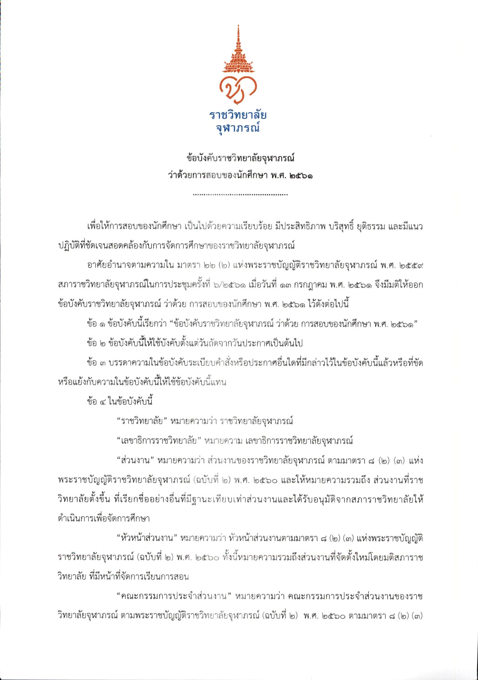 ข้อบังคับราชวิทยาลัยจุฬาภรณ์ ว่าด้วยการสอบของนักศึกษา พ.ศ. ๒๕๖๑