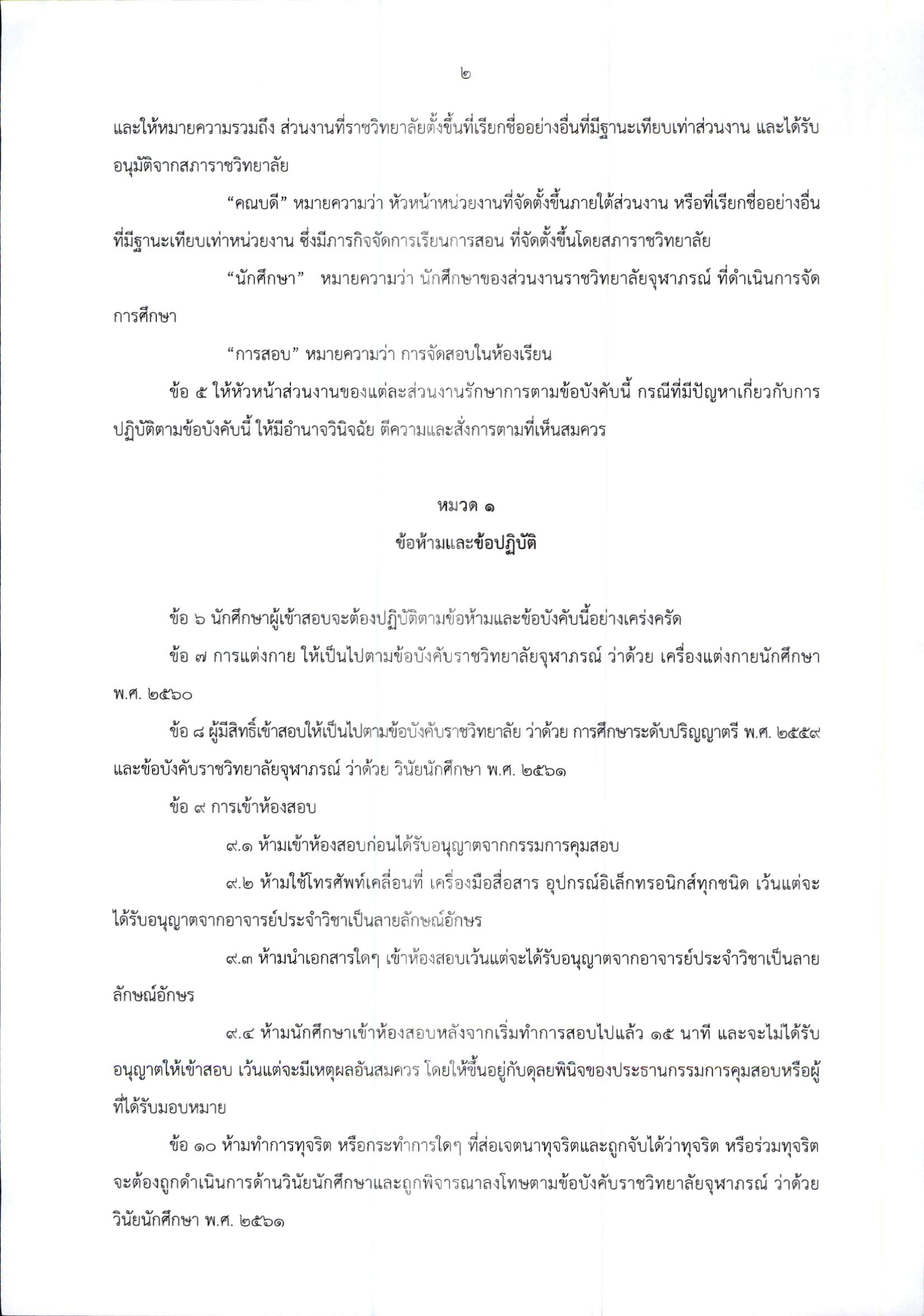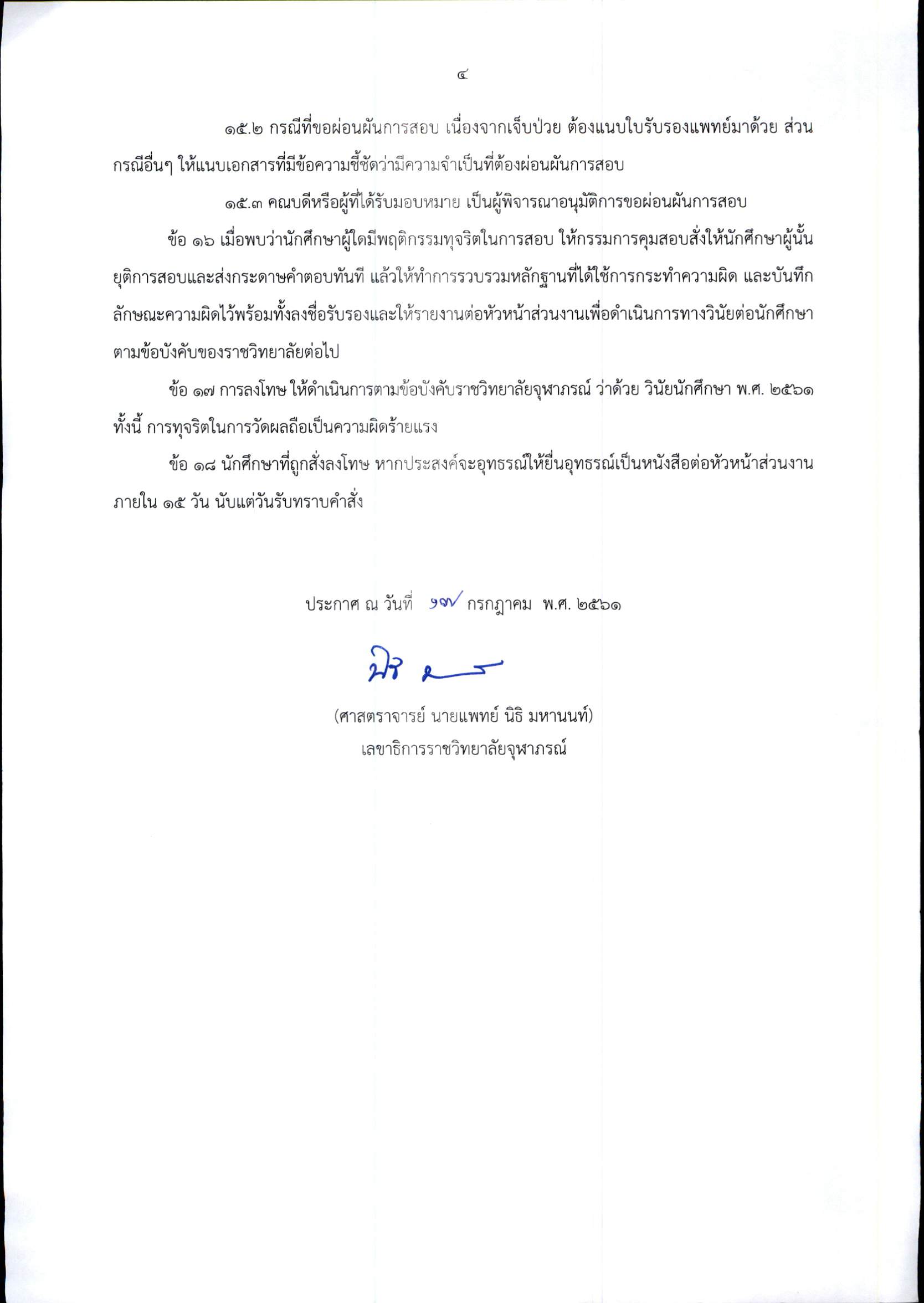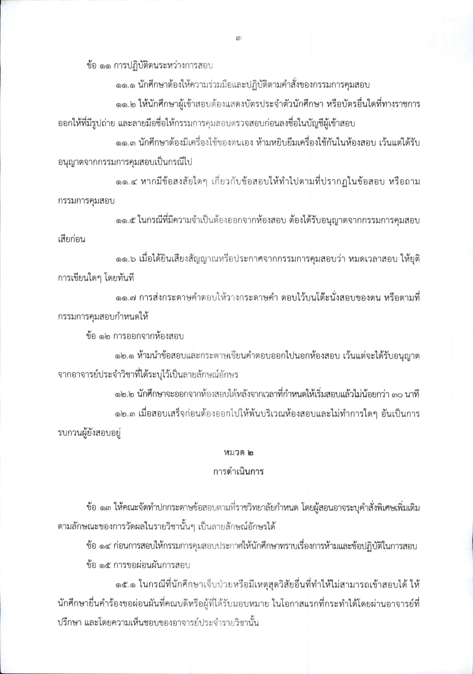 ข้อบังคับรจภ. ว่าด้วย การสอบของนักศึกษา พ.ศ. 2561