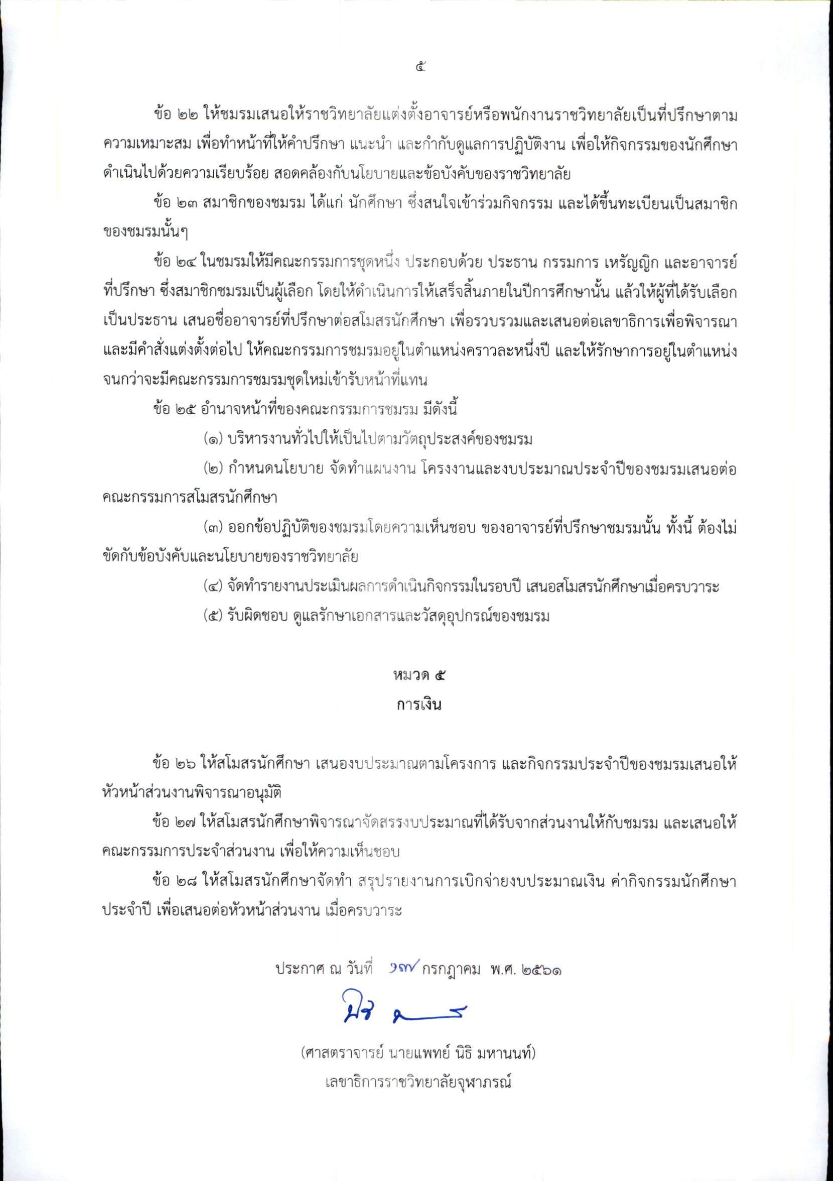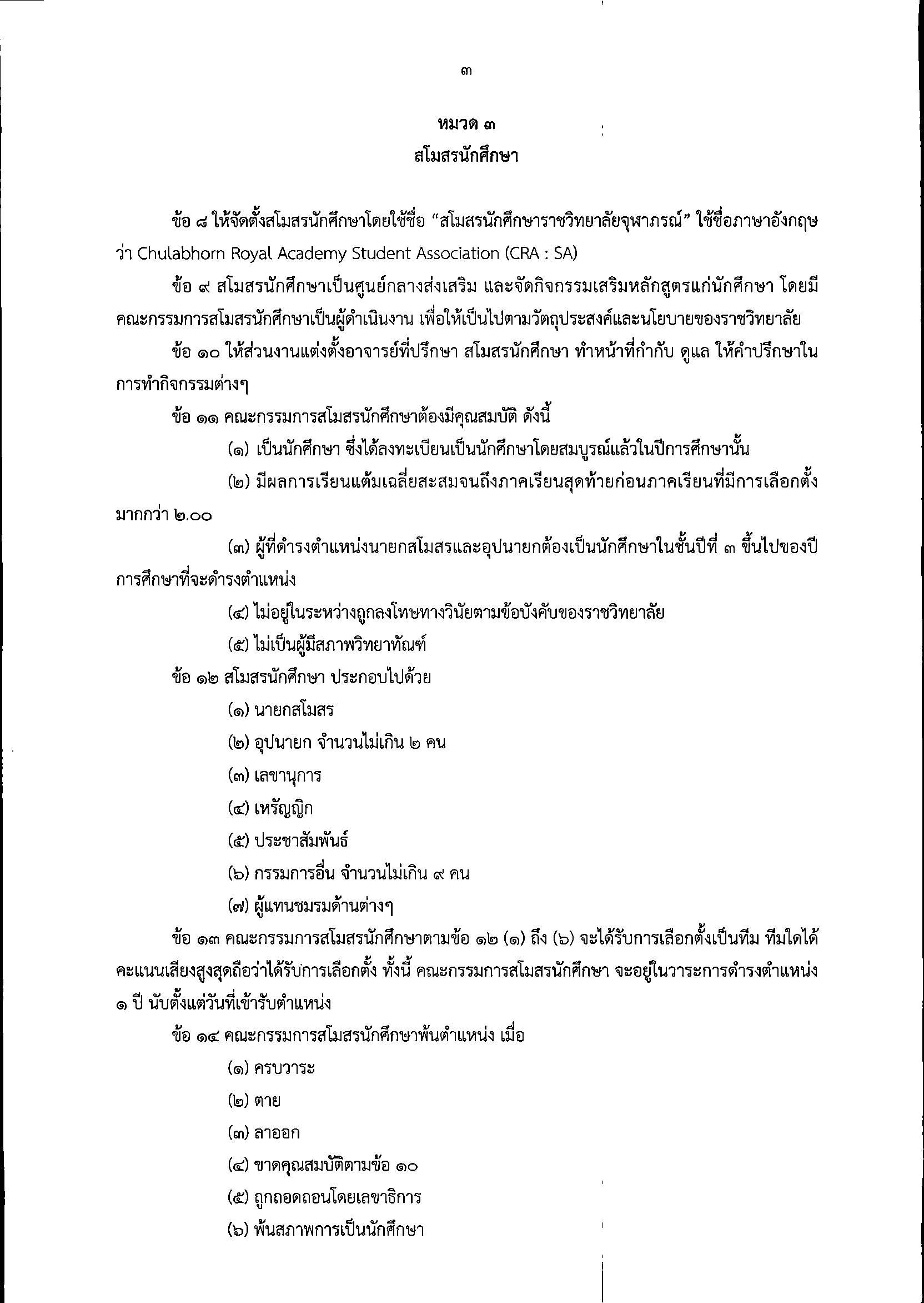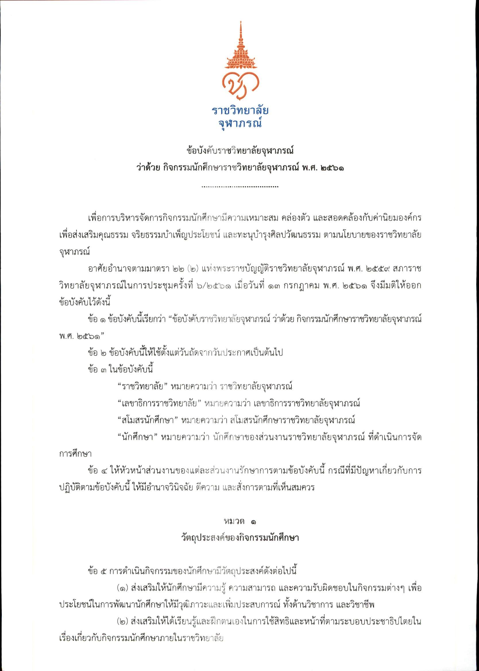 ข้อบังคับรจภ. ว่าด้วย กิจกรรมนักศึกษาราชวิทยาลัยจุฬาภรณ์ พ.ศ. 2561