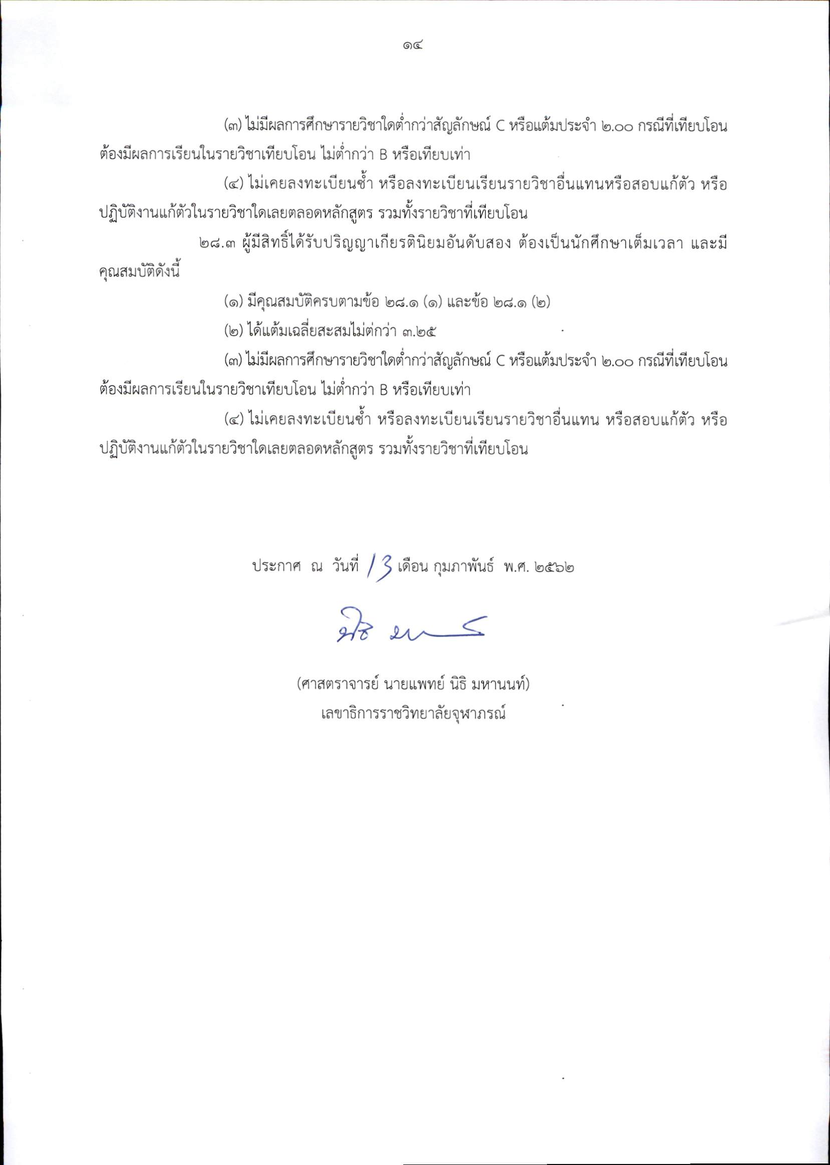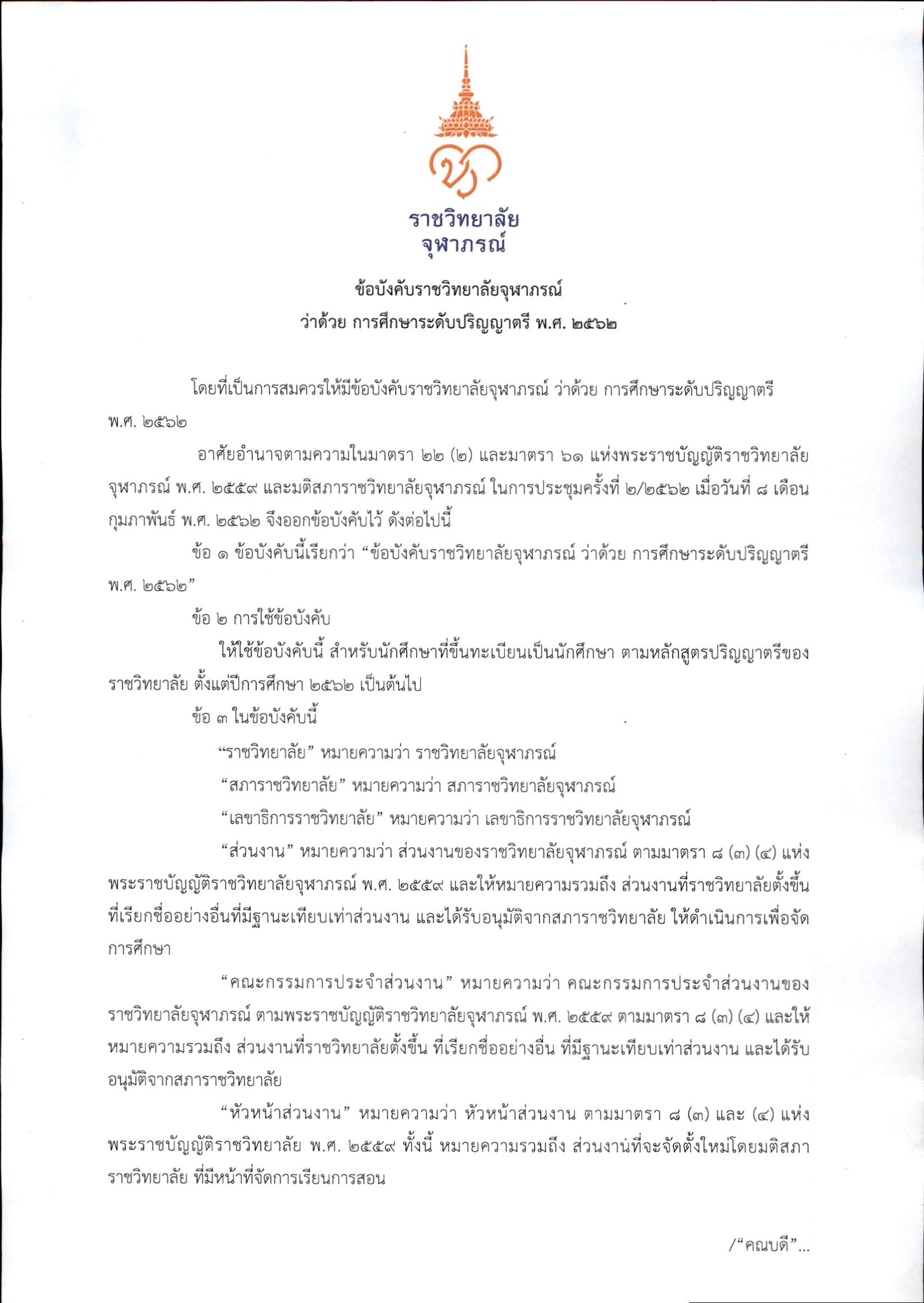 ข้อบังคับราชวิทยาลัยจุฬาภรณ์ ว่าด้วย การศึกษาระดับปริญญาตรี พ.ศ. ๒๕๖๒ (ฉบับที่ ๒) พ.ศ. ๒๕๖๗