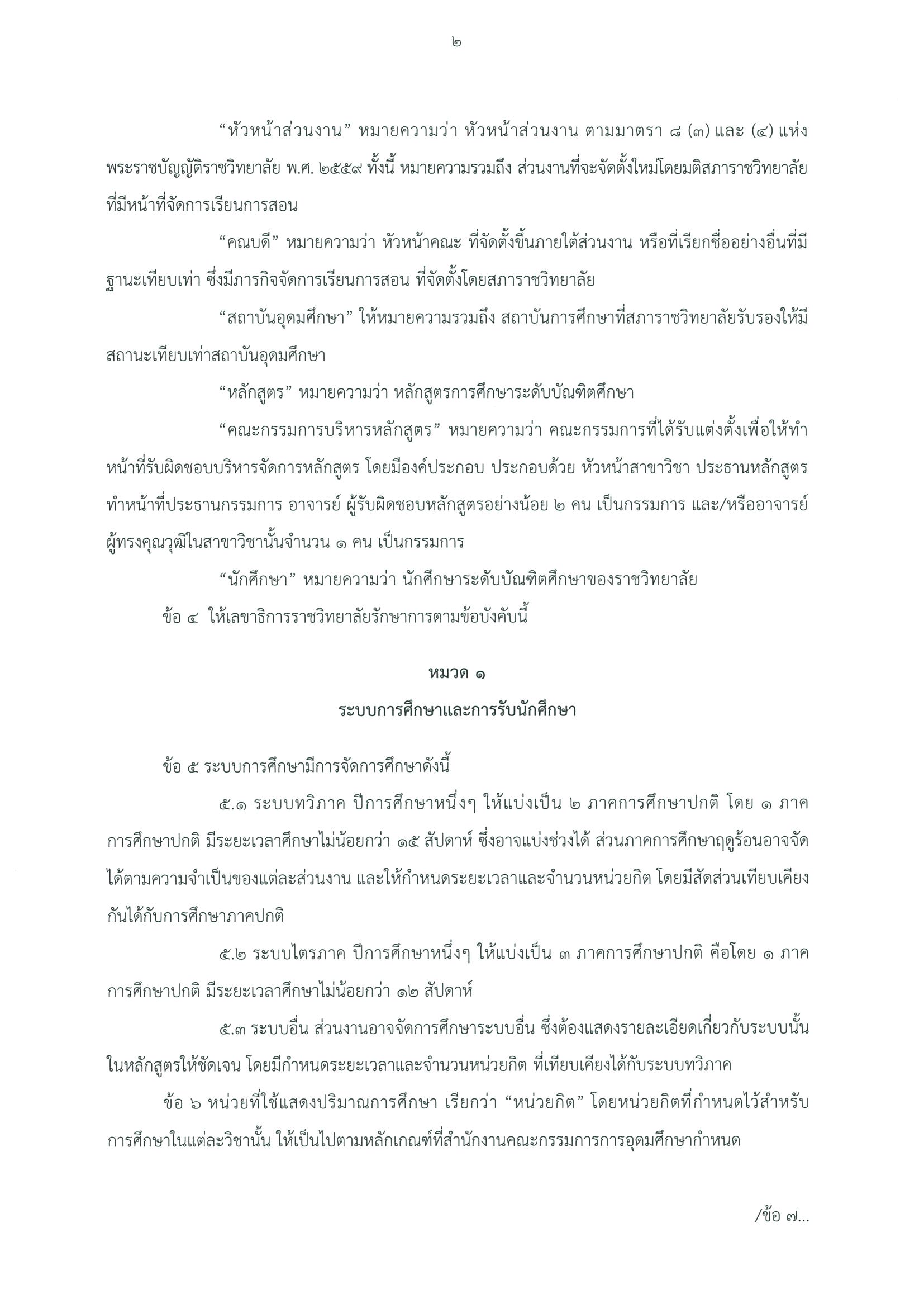 ข้อบังคับราชวิทยาลัยจุฬาภร์ ว่าด้วย การศึกษาระดับบัณฑิตศึกษา พ.ศ. ๒๕๖๓ (ฉบับที่ ๒) พ.ศ. ๒๕๖๗