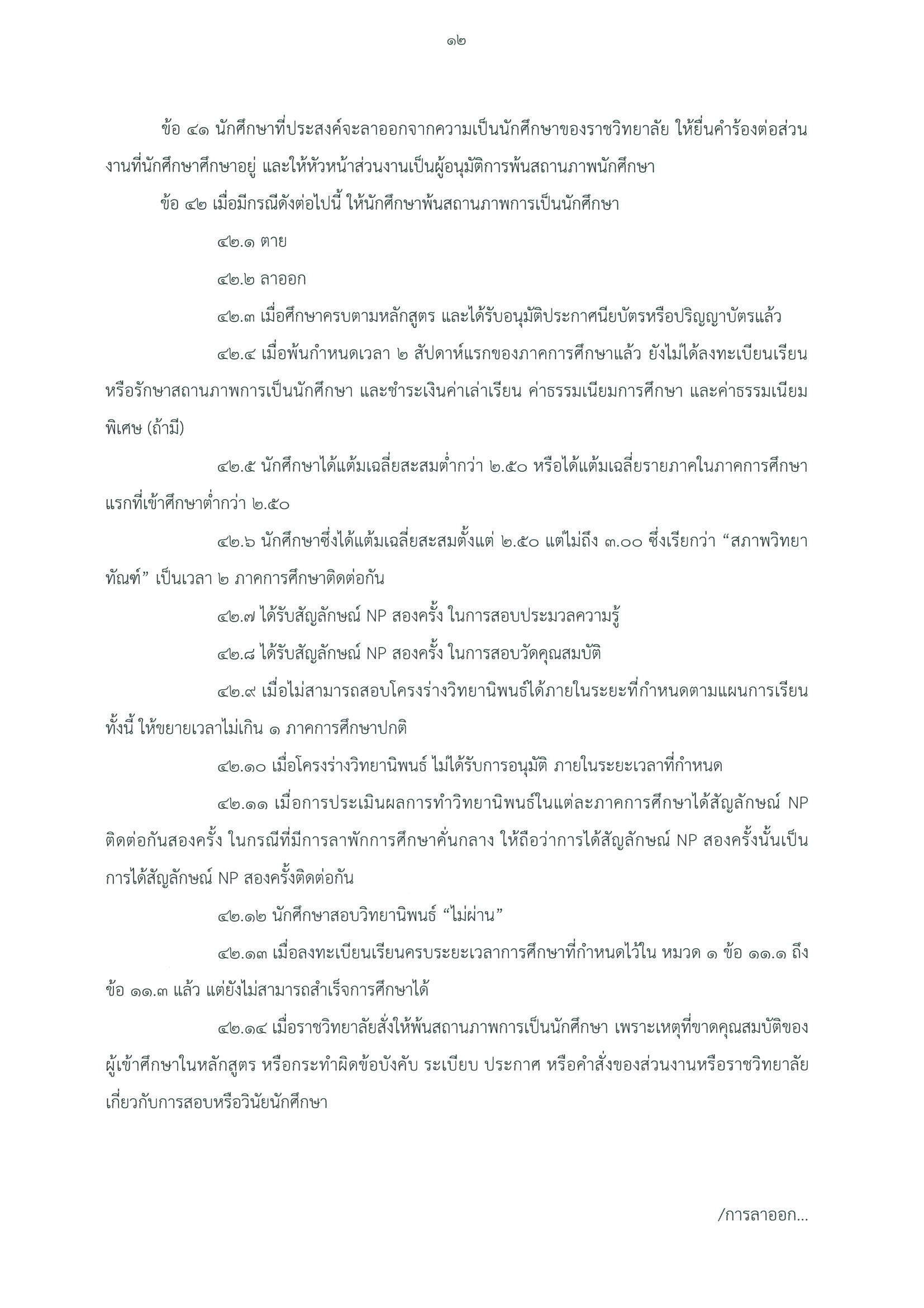 ข้อบังคับราชวิทยาลัยจุฬาภรณ์ ว่าด้วย การศึกษาระดับปริญญาตรี พ.ศ. ๒๕๖๒ (ฉบับที่ ๒) พ.ศ. ๒๕๖๗