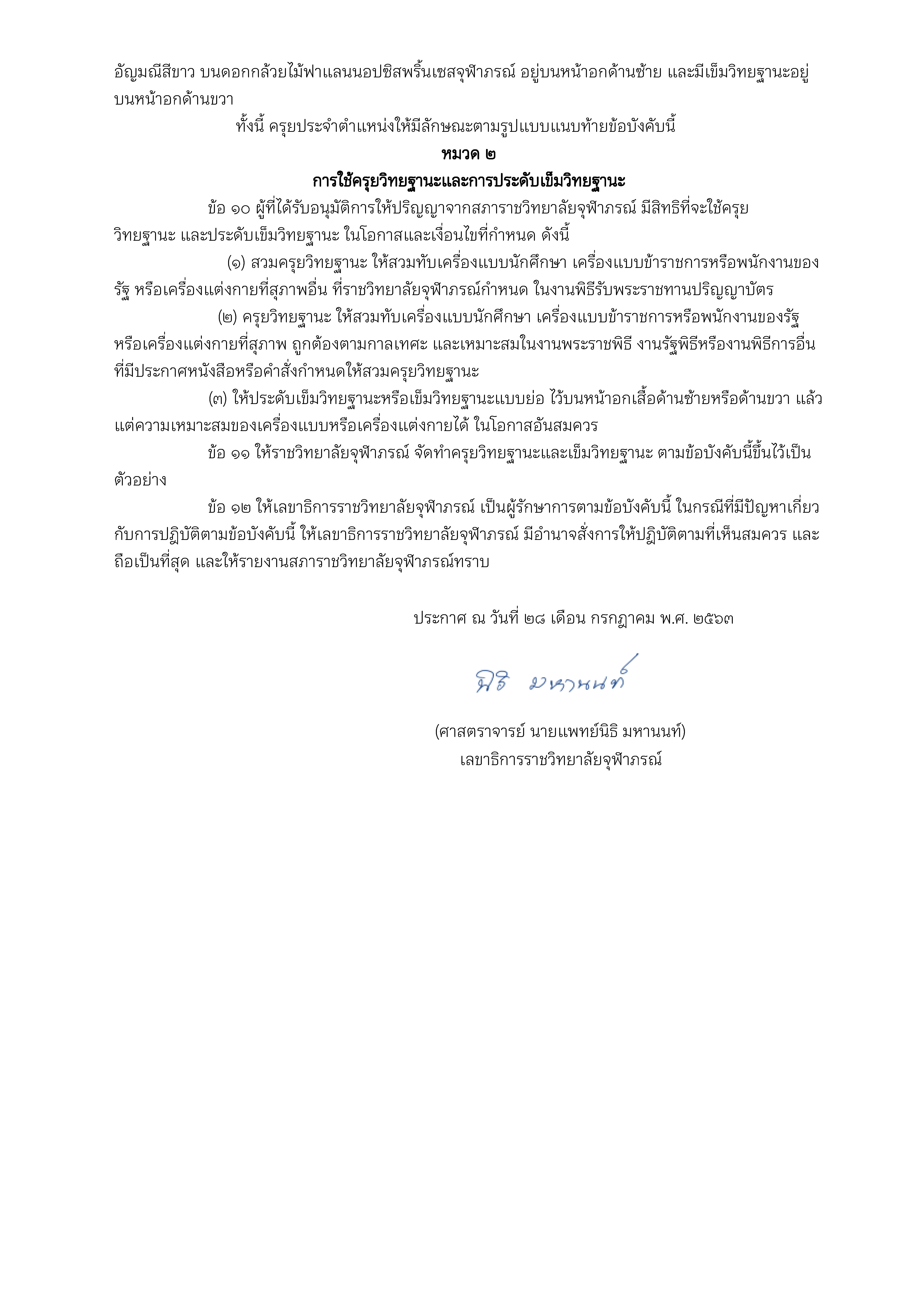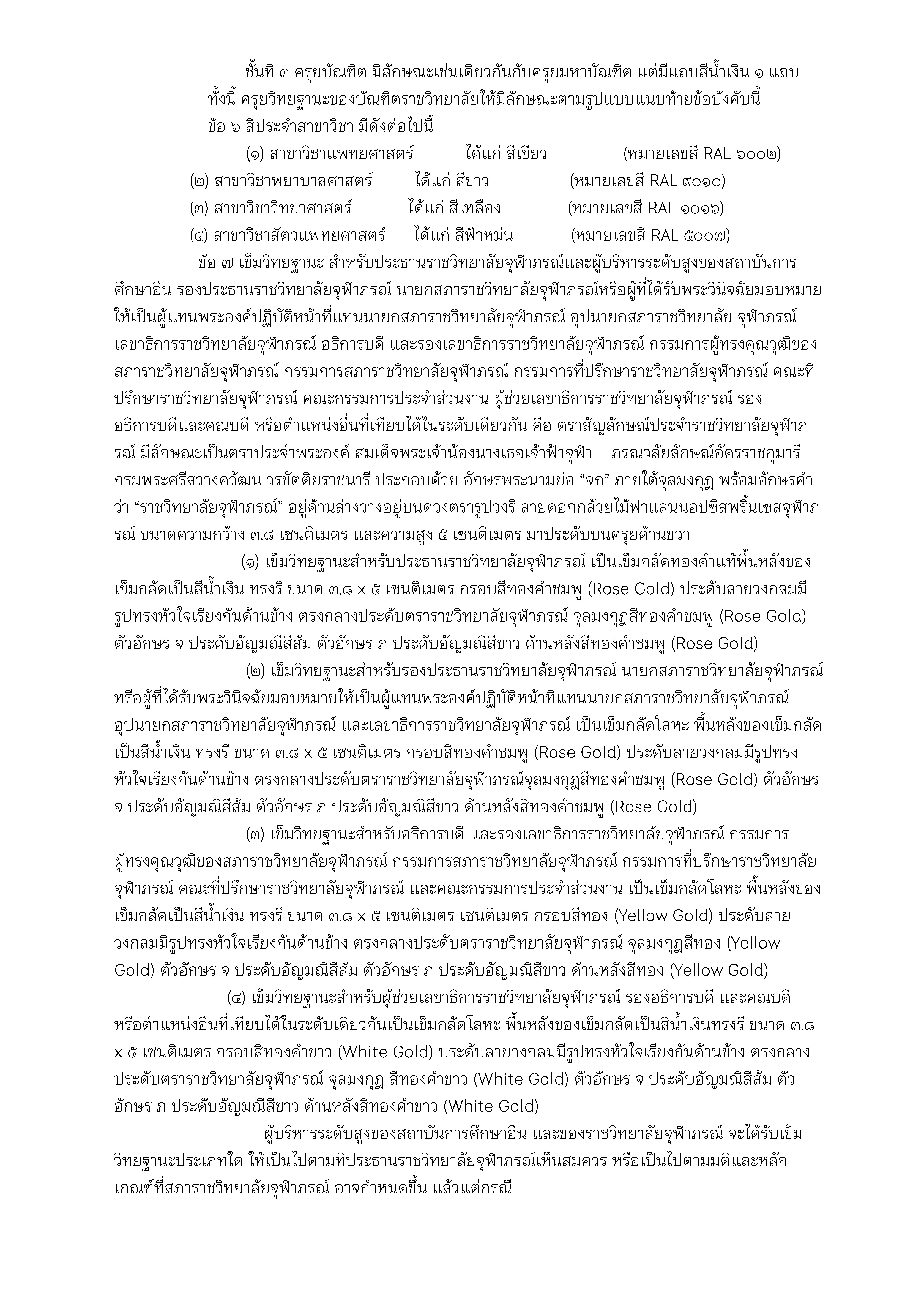 หน้าแรก > ข้อบังคับราชวิทยาลัยจุฬาภรณ์ ว่าด้วย ครุยวิทยฐานะและเข็มวิทยฐานะ ของบัณฑิตราชวิทยาลัยจุฬาภรณ์ พ.ศ. ๒๕๖๓