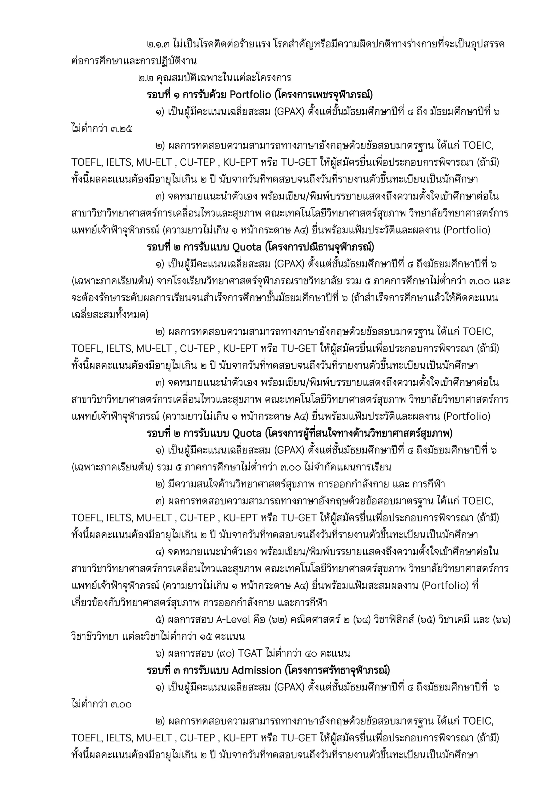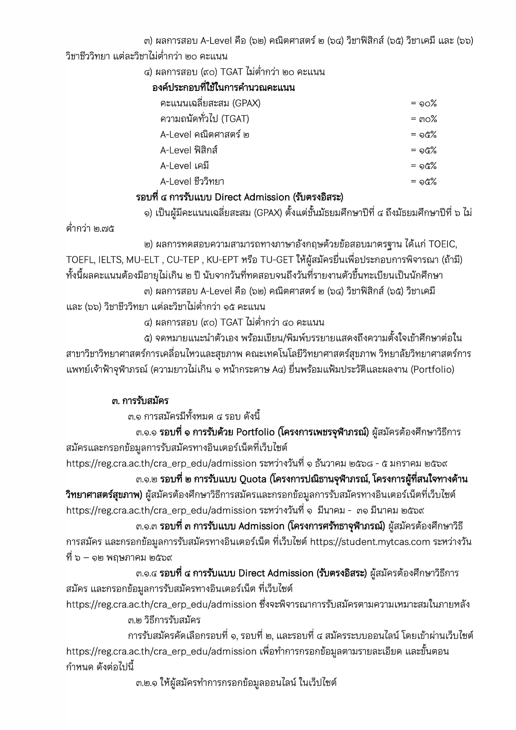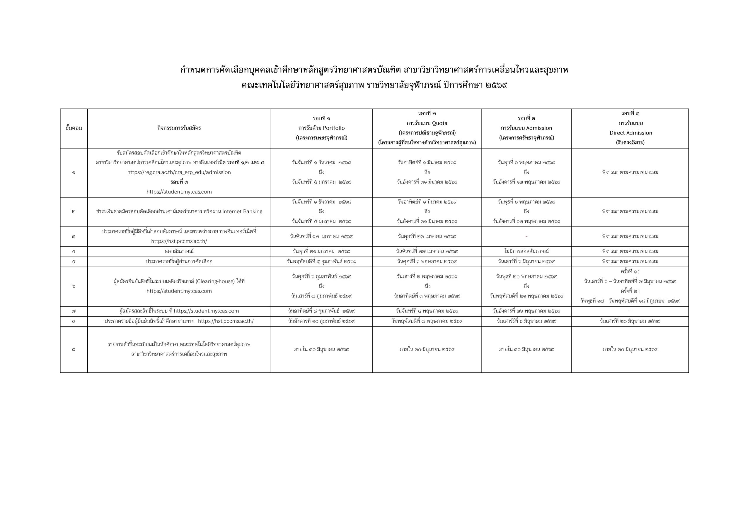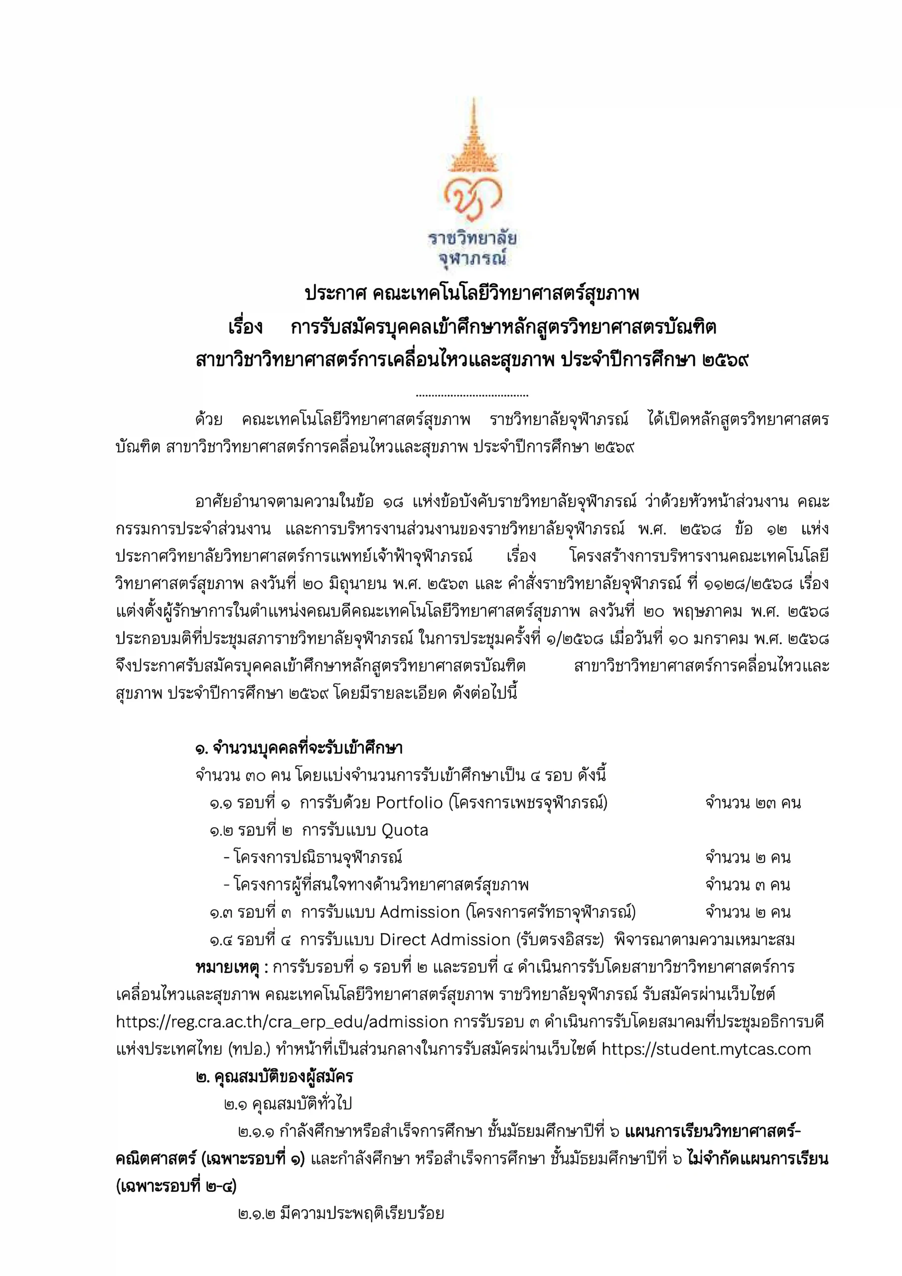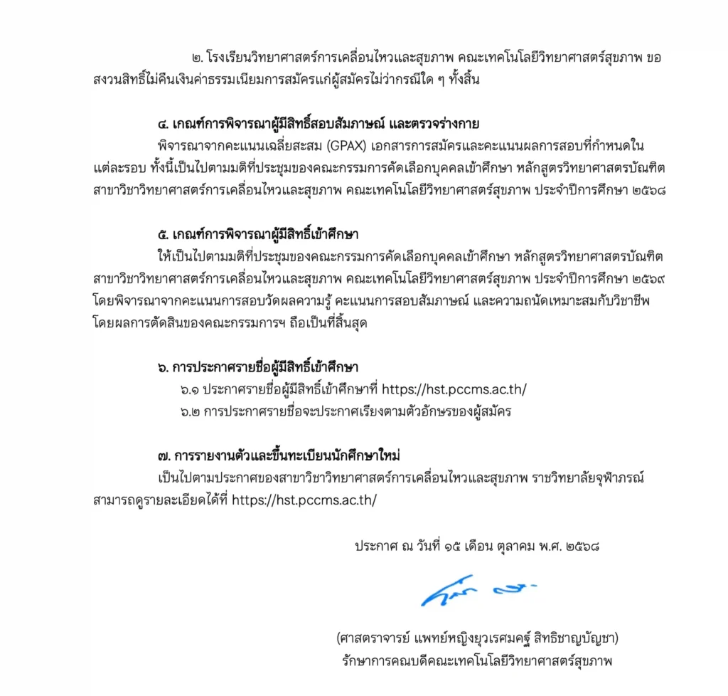 ประกาศ คณะเทคโนโลยีวิทยาศาสตร์สุขภาพ เรื่อง การรับสมัครบุคคลเข้าศึกษาหลักสูตรวิทยาศาสตรบัณฑิต สาขาวิชาวิทยาศาสตร์การเคลื่อนไหวและสุขภาพ ประจำปีการศึกษา ๒๕๖๙
