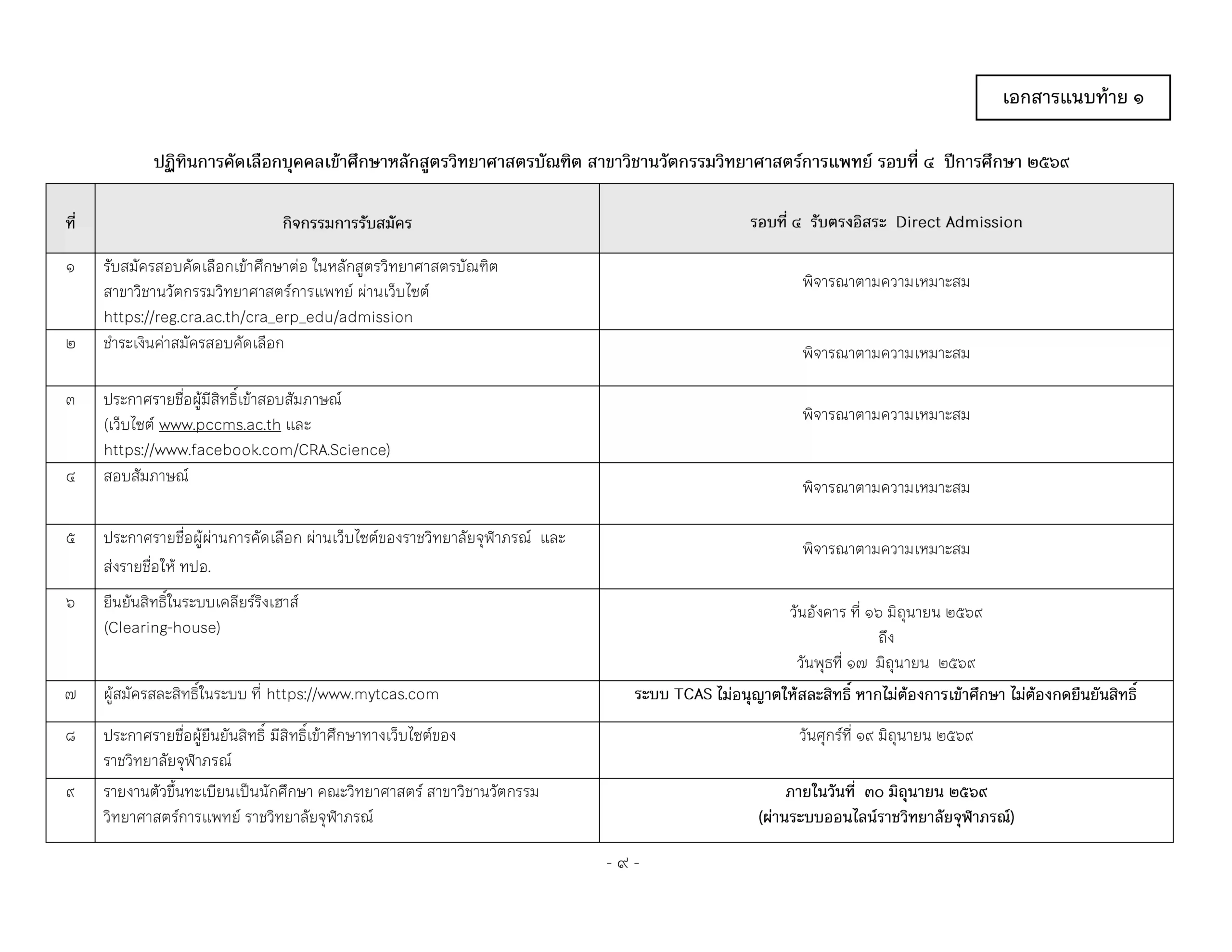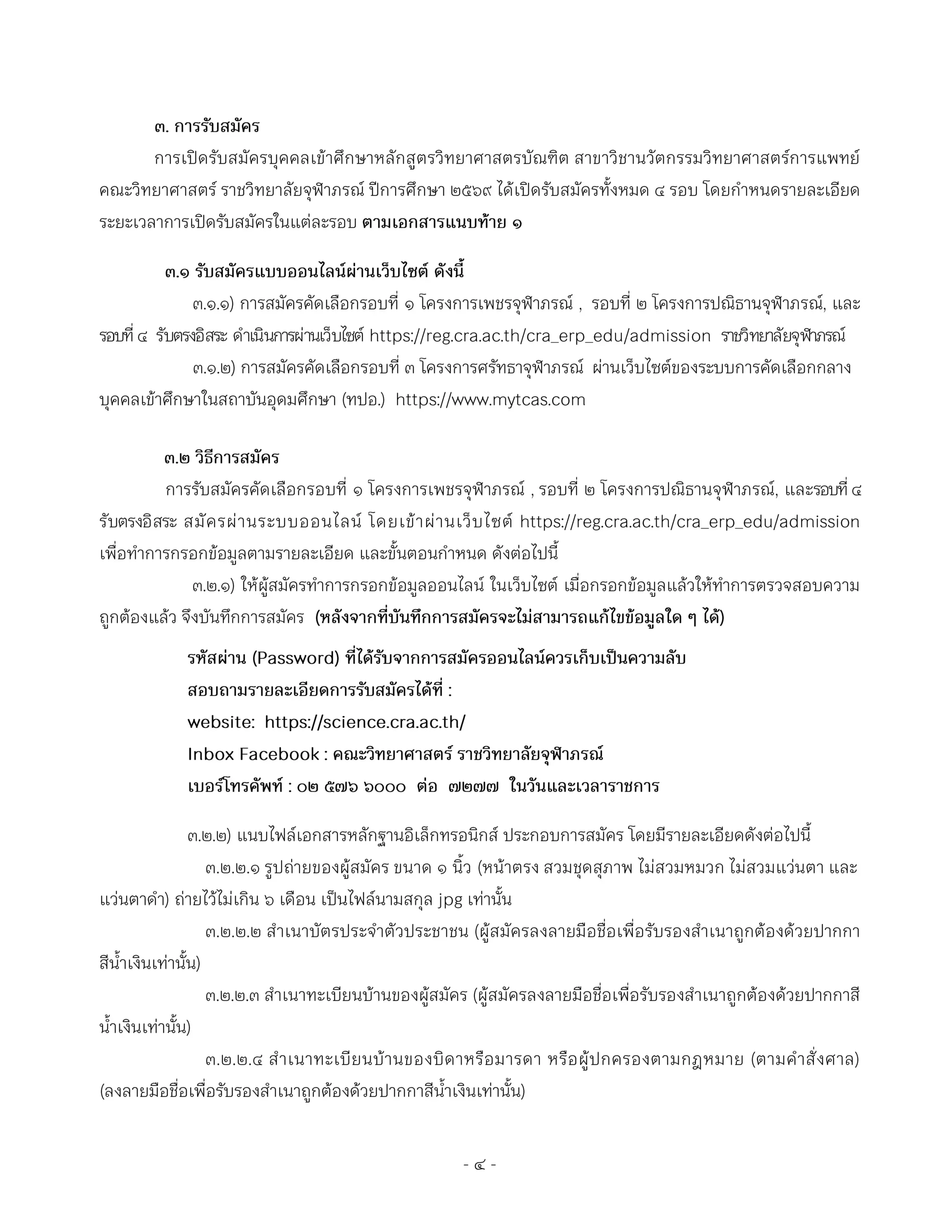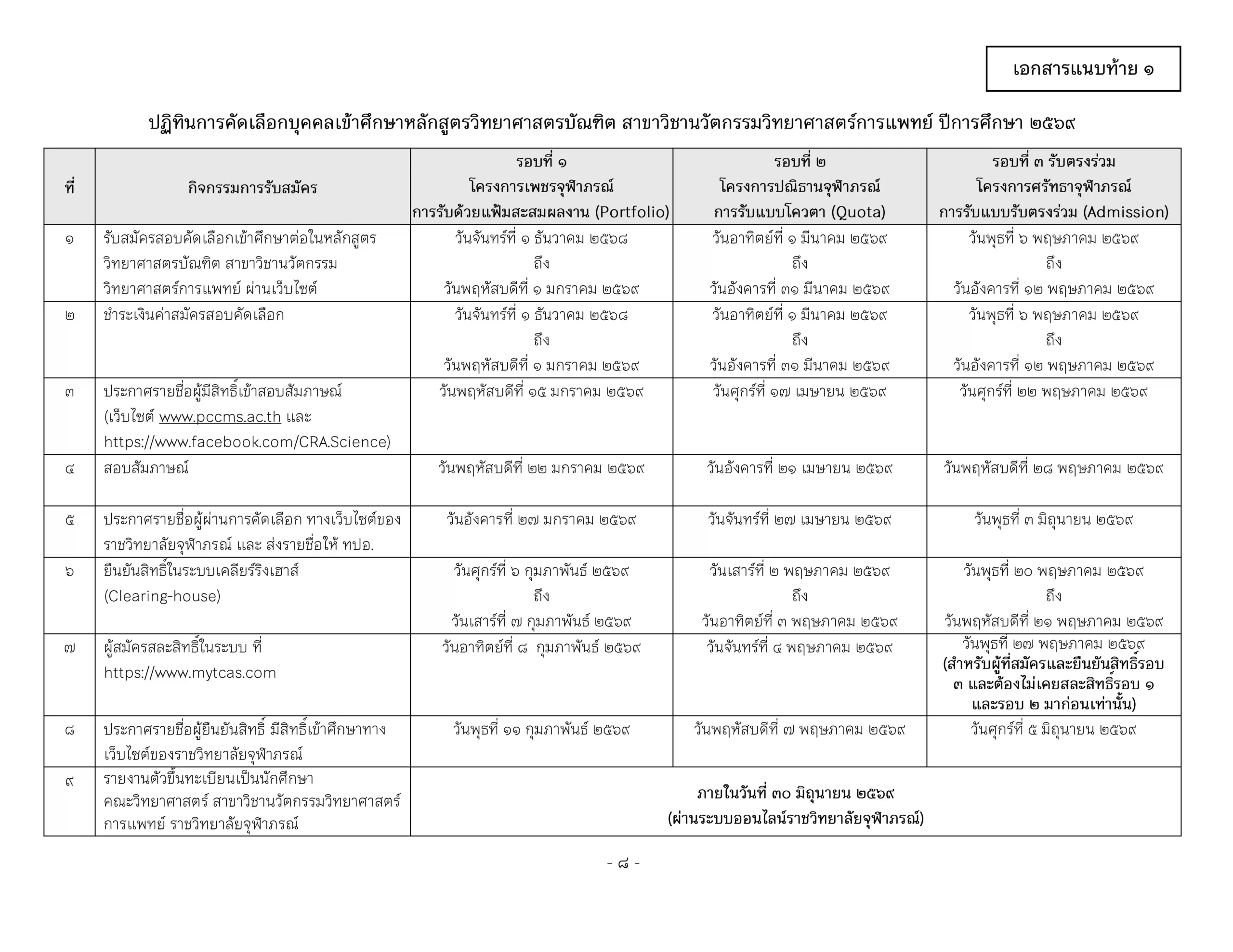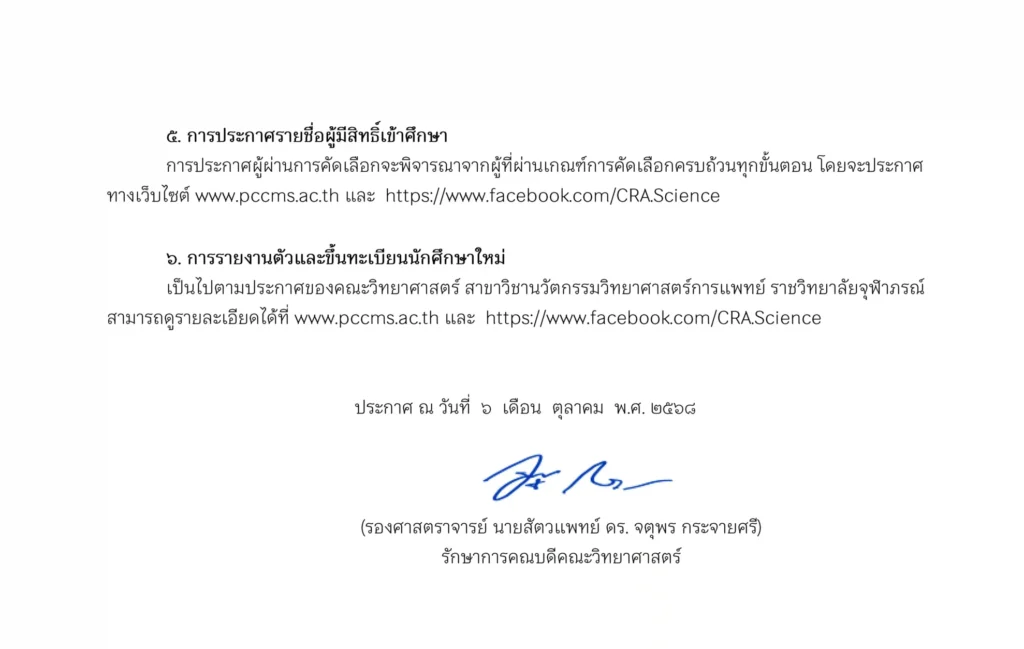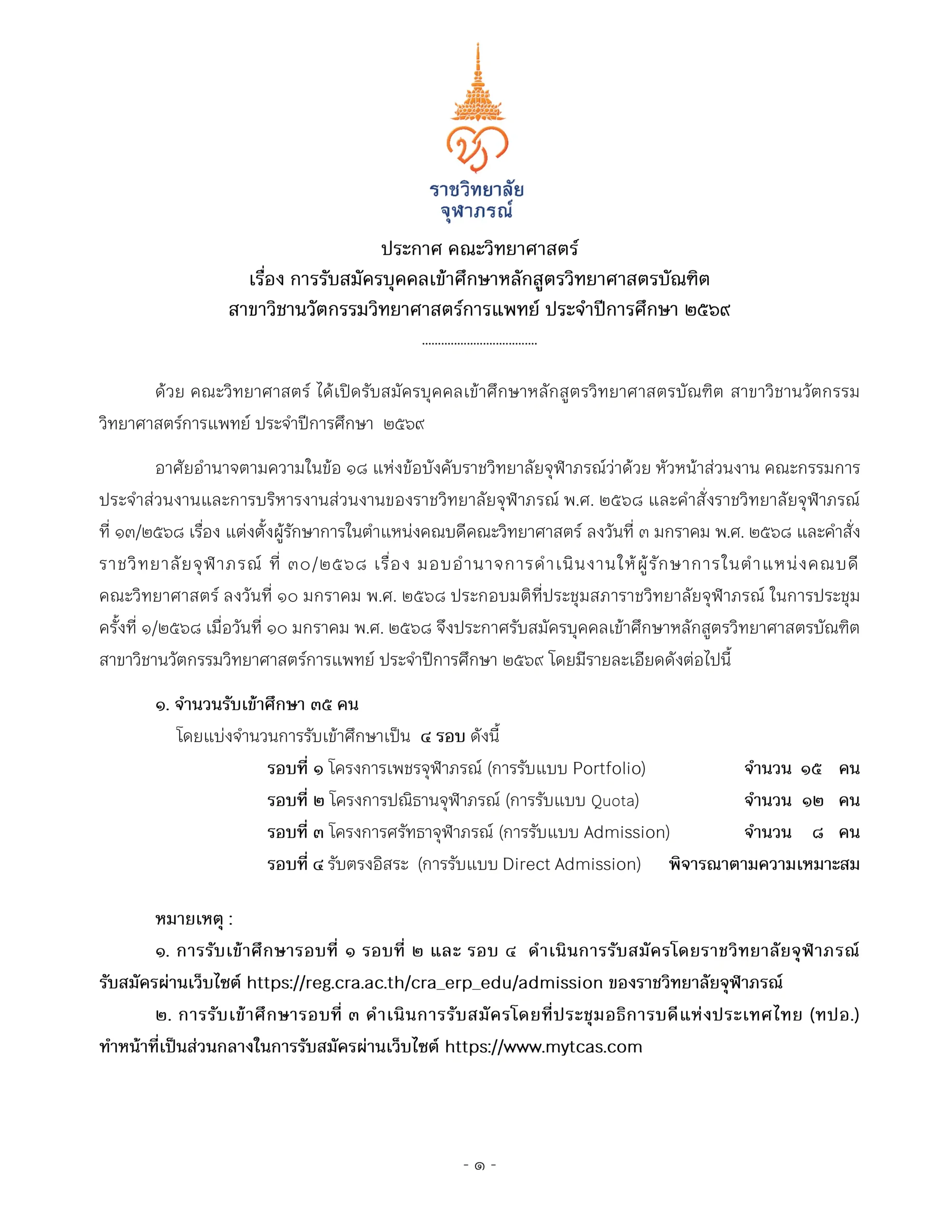 ประกาศ คณะวิทยาศาสตร์ เรื่อง การรับสมัครบุคคลเข้าศึกษาหลักสูตรวิทยาศาสตรบัณฑิต สาขาวิชานวัตกรรมวิทยาศาสตร์การแพทย์ ประจำปีการศึกษา ๒๕๖๙