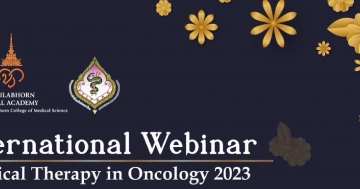 เชิญชวนนักกายภาพบำบัดและบุคลากรทางการแพทย์ ที่มีความสนใจในด้านการฟื้นฟูและเพิ่มสมรรถนะในผู้ป่วยมะเร็งด้วยการออกกำลังกายเพื่อการรักษาเข้าร่วมสัมมนาวิชาการโครงการ “International Webinar: Physical Therapy in Oncology 2023” ราชวิทยาลัยจุฬาภรณ์ โดยคณะเทคโนโลยีวิทยาศาสตร์สุขภาพ วิทยาลัยวิทยาศาสตร์การแพทย์เจ้าฟ้าจุฬาภรณ์ ร่วมกับสมาคมกายภาพบำบัดแห่งประเทศไทย ขอเชิญชวนนักกายภาพบำบัดและบุคลากรทางการแพทย์ ที่มีความสนใจในด้านการฟื้นฟูและเพิ่มสมรรถนะในผู้ป่วยมะเร็งด้วยการออกกำลังกายเพื่อการรักษาเข้าร่วมสัมมน…