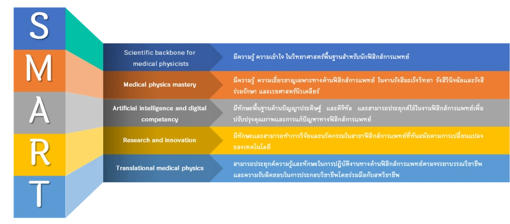 มุ่งผลิตบุคลากรด้านฟิสิกส์การแพทย์ที่มีความเชี่ยวชาญและจรรยาบรรณวิชาชีพที่ยอมรับในระดับสากล